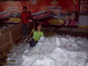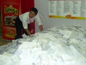 Mr. Akira Soma, Sales Department Head of AJINOMOTO PHILIPPINES CORPORATION picks a lucky winner from a mountain of entries.