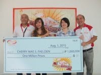 Cherry Mae Faelden of Cagayan de Oro is a millionaire at 19 years old. This is after she won the one (1) million grand prize of the Ajinomoto Big-time Papremyo raffle promo. Cherry Mae is a senior college student taking up BS Education.